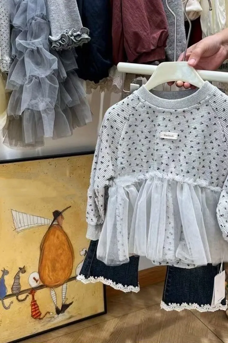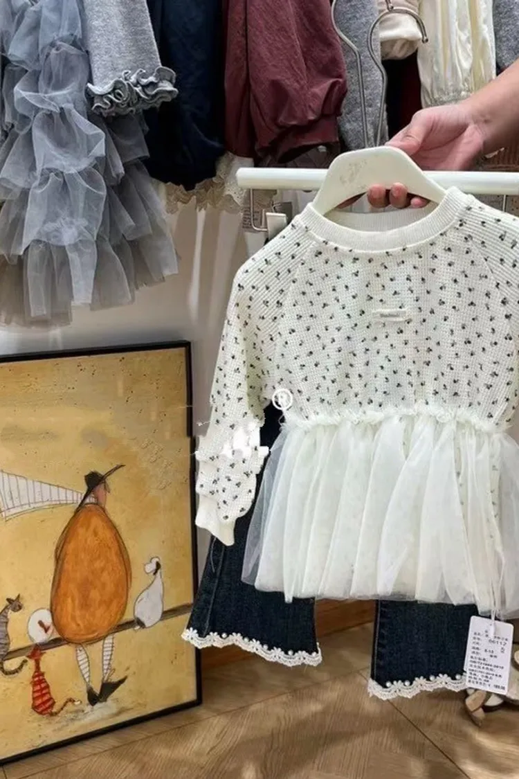 碎花網紗拼接上衣